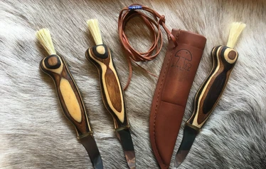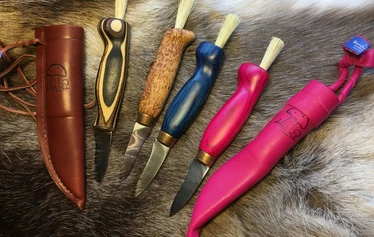 Sienestäjän käteen sopiva kaunis ja näyttävä sieniveitsi.